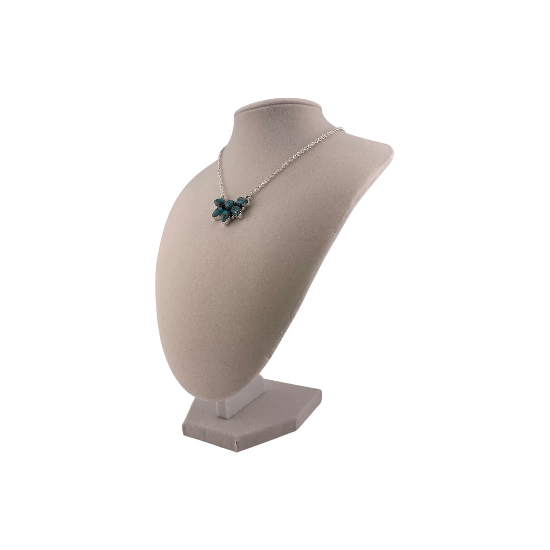 The Timeless Cluster Necklace with Copper Turquoise is a true statement of elegance. This 925 sterling silver design highlights a cluster of Copper Turquoise stones, celebrated for their striking mix of hues and bold veining. The necklace is crafted with a sterling silver chain and secured with a sturdy lobster clasp. Its adjustable chain allows for a comfortable and versatile fit, making it perfect for layering or wearing on its own. Whether worn as an everyday accessory or gifted for a special occasion, this necklace adds sophistication and timeless style to any look.
