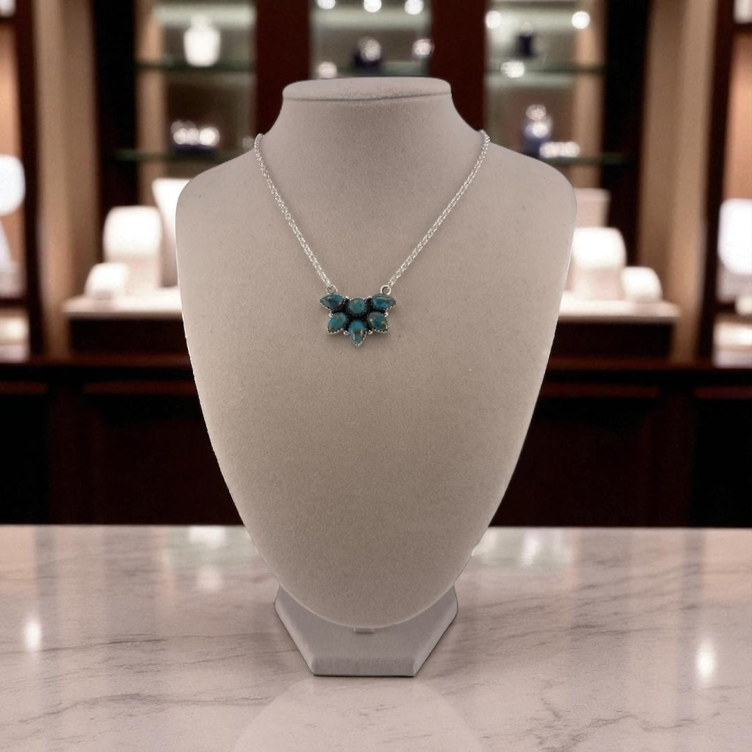 Timeless Sterling Silver Cluster Necklace with Copper Turquoise