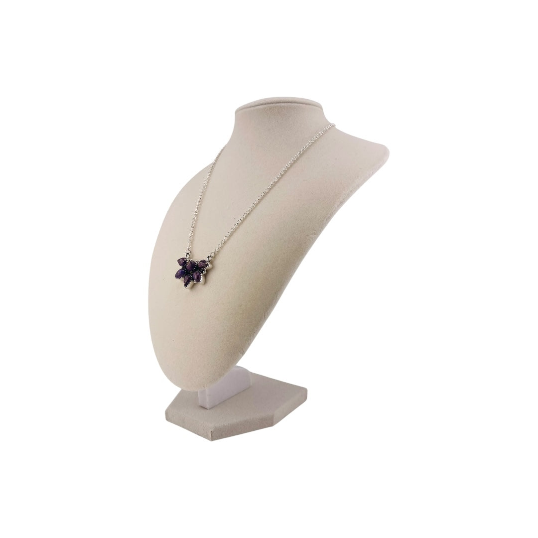 Timeless Sterling Silver Cluster Necklace with Purple Dahlia