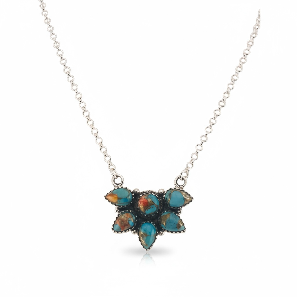 The Timeless Cluster Necklace with Spiny Oyster Stone is a true statement of elegance. This 925 sterling silver design highlights a cluster of Spiny Oyster stones, celebrated for their vibrant hues and unique patterns. The necklace is crafted with a sterling silver chain and secured with a sturdy lobster clasp. Its adjustable chain allows for a comfortable and versatile fit, making it perfect for layering or wearing on its own. Whether worn as an everyday accessory or gifted for a special occasion, this necklace adds sophistication and timeless style to any look.